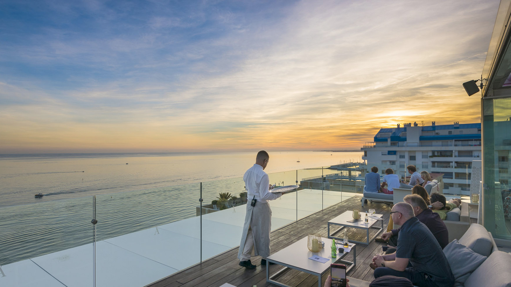 Des DJs en live installent l’ambiance au coucher du soleil.